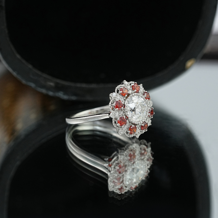 Victorian designs emphasized sentiment and symbolism, inspired by Queen Victoria’s own jewelry. Rings featured motifs like hearts and flowers, and used diamonds and colored gemstones such as rubies, sapphires, and emeralds.
