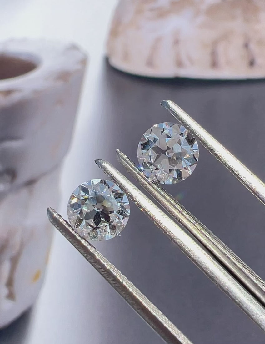 Matching pair of loose diamonds by Old Gem House , featuring stunning Old European round cuts at 1.50 TCW. Graded EF color and VS clarity , they’re ideal for personalized jewelry—perfect for earrings or three-stone ring designs. A timeless choice for a wedding gift.