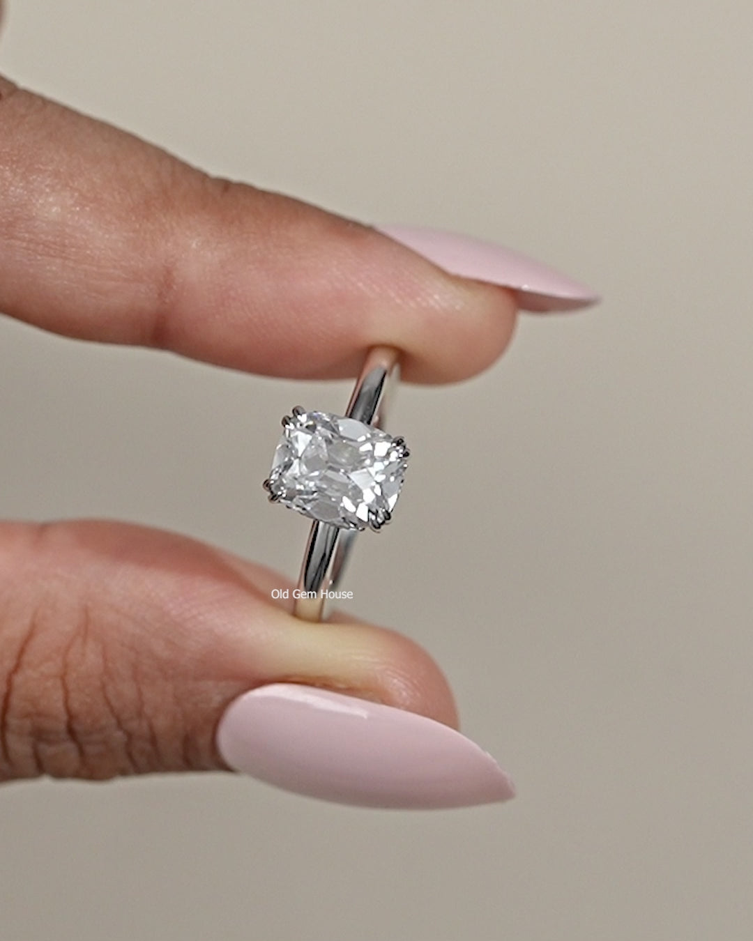 Old Mine Cushion Cut Lab Grown Diamond Hidden Halo Ring