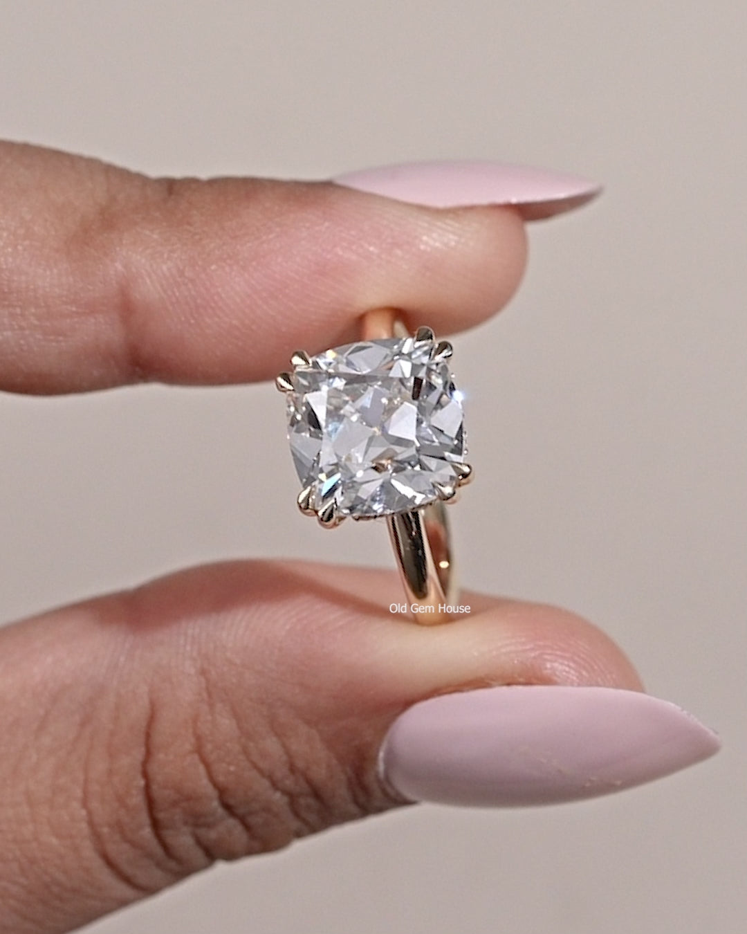 Introducing a true masterpiece from THE OLD GEM HOUSE, this exquisite ring showcases a 5.00 CT Old Mine Square Cushion Cut Lab-Grown Diamond with flawless EF color and exceptional VS clarity, all set in rich 14K Yellow Gold. The hidden halo is adorned with delicate 0.10 Carat Round Cut Diamonds of matching GH/VS quality, enhancing its refined beauty. Every detail is thoughtfully crafted, making this ring a timeless and one-of-a-kind symbol of elegance and sophistication.