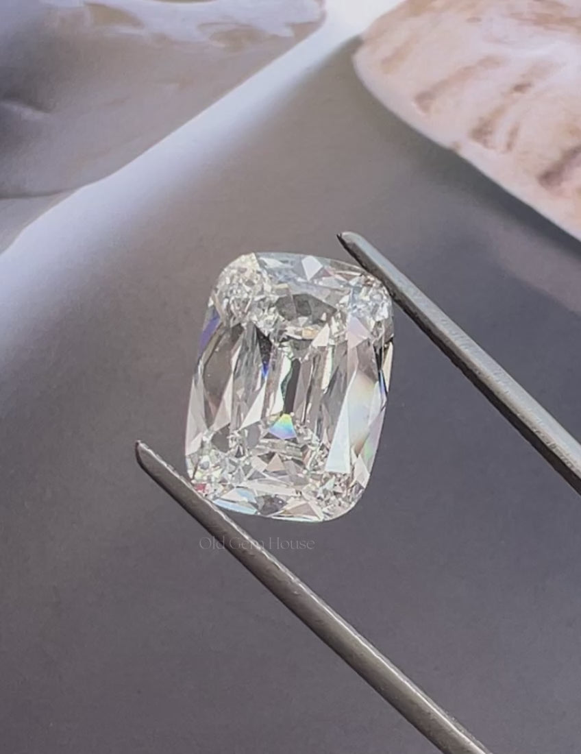 Each of The OLD GEM HOUSE diamonds is ethically sourced and expertly cut from premium rough by our master gem cutters. This diamond is 5.05 Carat in a Cushion-Shaped Old Mine Cut with a color grade of EF and clarity of VS. It is a Lab-Grown Diamond, offering both beauty and sustainability.